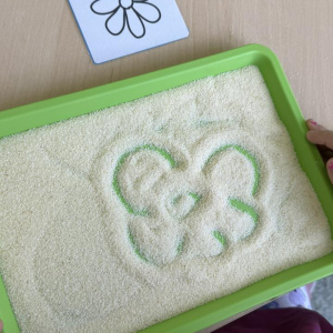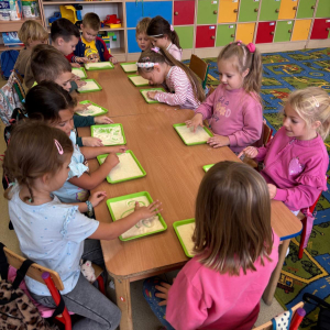 tworzyły rysunki i wzory na tackach - rozwijając wyobraźnię i kreatywność.