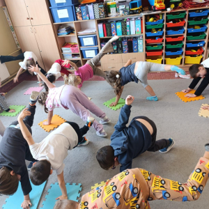 ćwiczyły sprawność ciała — podczas lotu na „dywanie”,