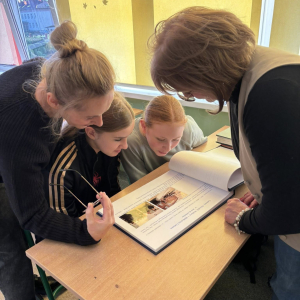 pani Marzena Rydzik, która pokazała uczniom kroniki oraz wszystkie wydania biuletynów „Między Sanem a Wisłokiem” oraz „Echa znad Sanu i Wisłoka”.