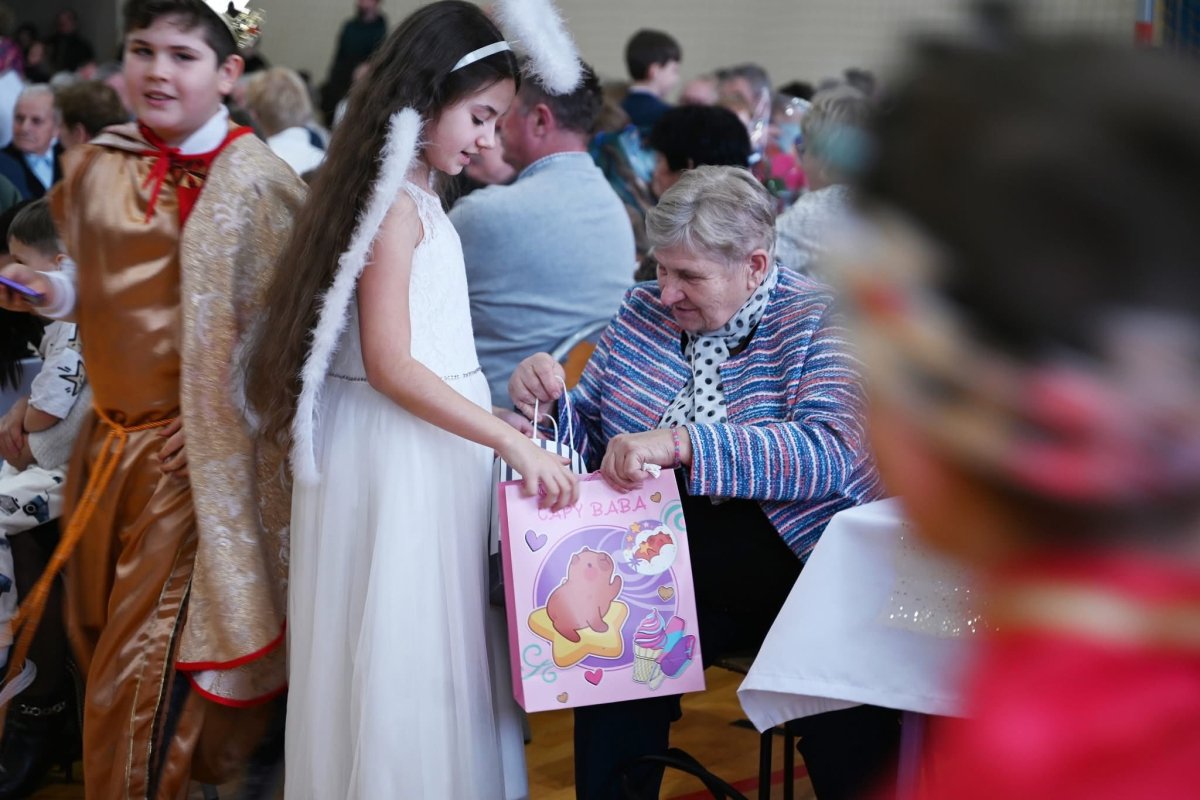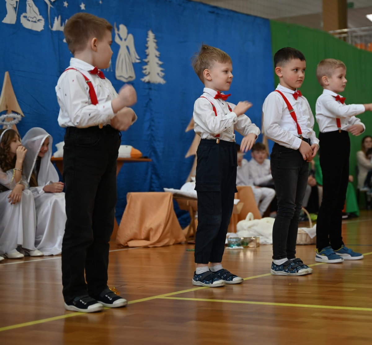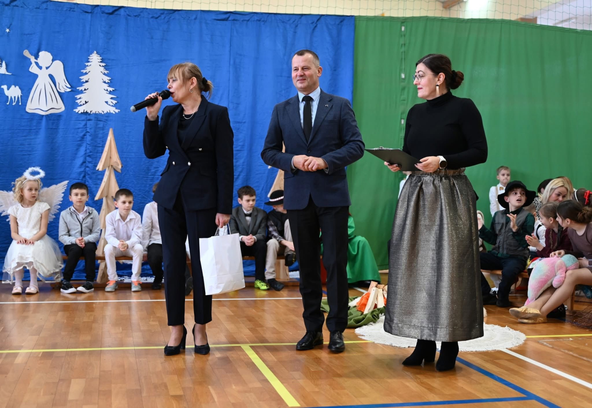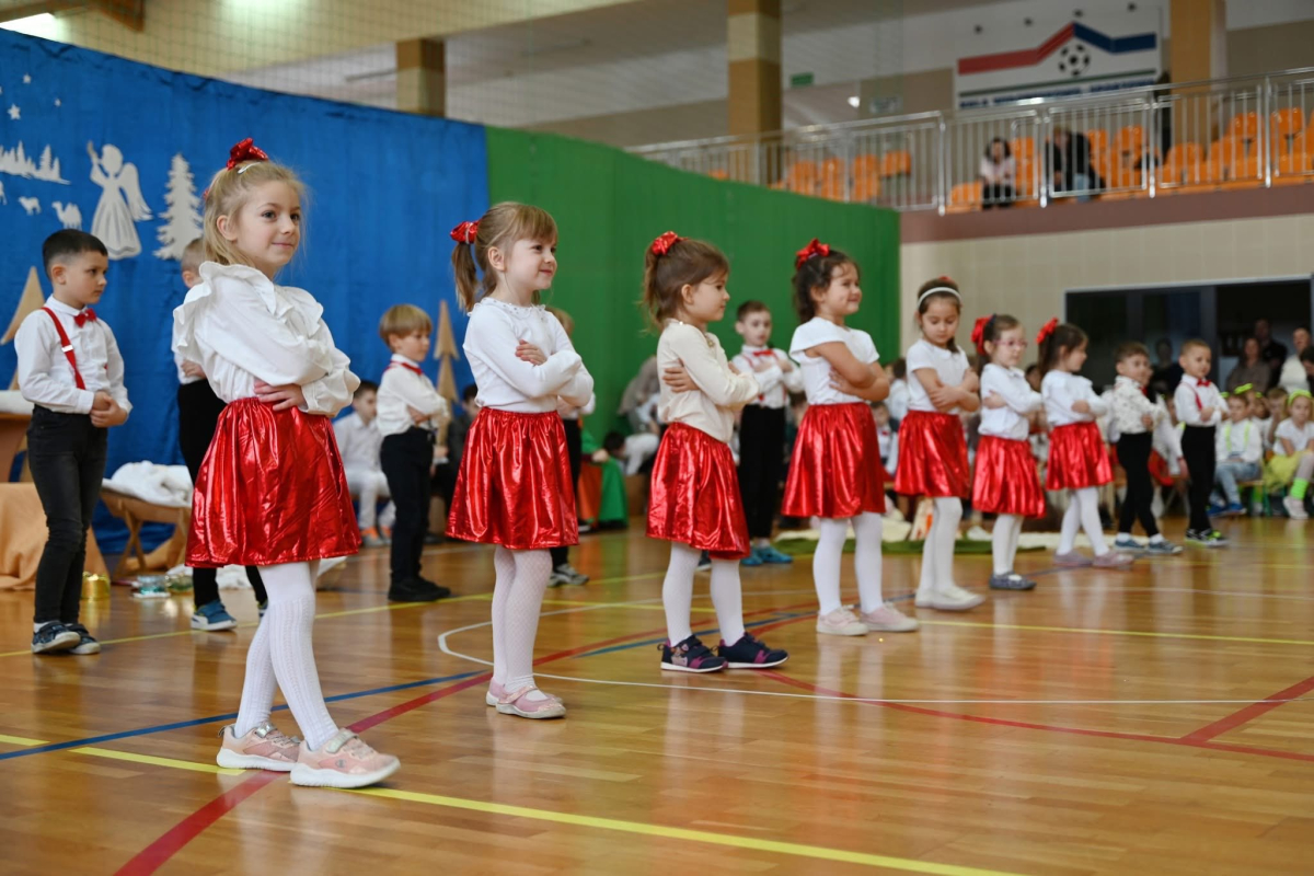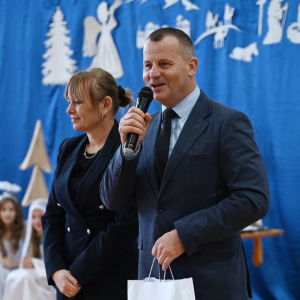 Część artystyczną rozpoczął program jasełkowy przygotowany przez uczniów, który wprowadził wszystkich w ciepłą, rodzinną atmosferę. Mali artyści z ogromnym zaangażowaniem wcielili się w swoje role, prezentując piękne kolędy i sceny bożonarodzeniowe, nagradzane gromkimi brawami.