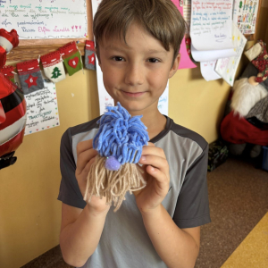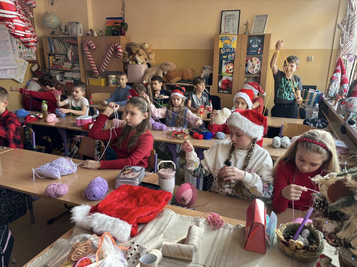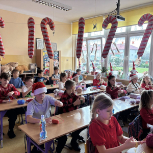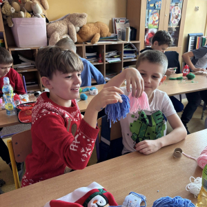 5 grudnia uczniowie klasy 3a wykonywali własnoręczne dekoracje na choinkę, którą będziemy ubierać już w poniedziałek. Pomysł narodził się dzięki naszej uczennicy Zuzi, która przyniosła do klasy dwa urocze „skrzaty”. Tak spodobały się dzieciom, że postanowiliśmy zaprosić mamę Zuzi, aby pokazała nam, jak je zrobić.