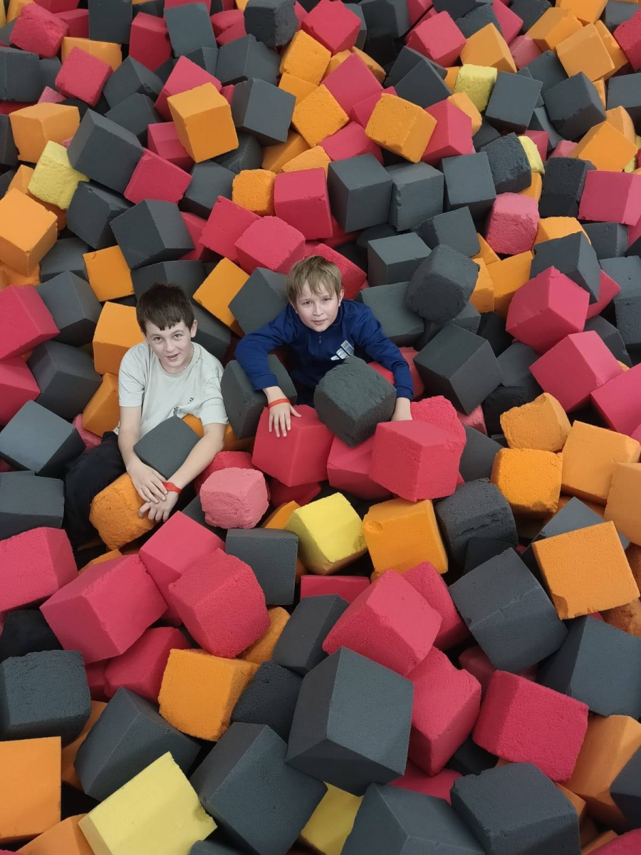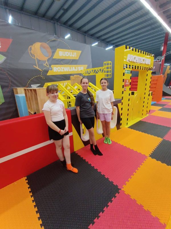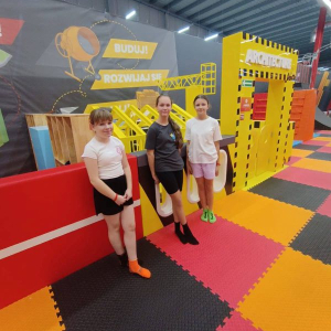 Po dotarciu na miejsce dzieci mogły korzystać z wielu atrakcji – ogromnej strefy trampolin, toru przeszkód Ninja, basenu z gąbkami, ścianki wspinaczkowej oraz areny do gry w zbijaka. Radości nie było końca! Uczniowie chętnie rywalizowali ze sobą w różnych konkurencjach, a jednocześnie wspierali się i pomagali sobie nawzajem.