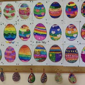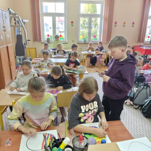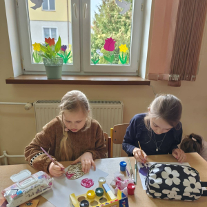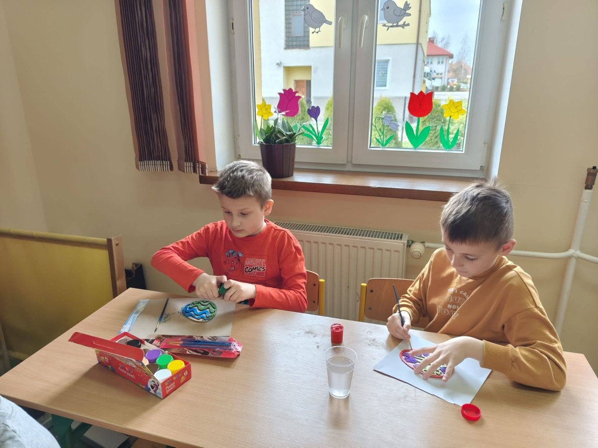 Świąteczna atmosfera udzieliła się wszystkim, a drewniane i papierowe dzieła Świetlików zawisły na tablicy, dekorując świetlicę i przypominając o nadchodzącej Wielkanocy.
