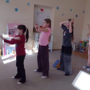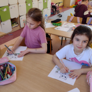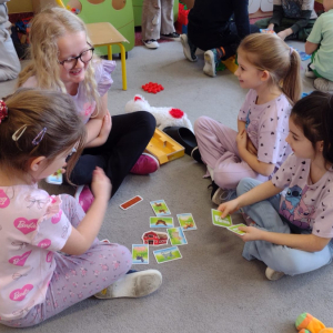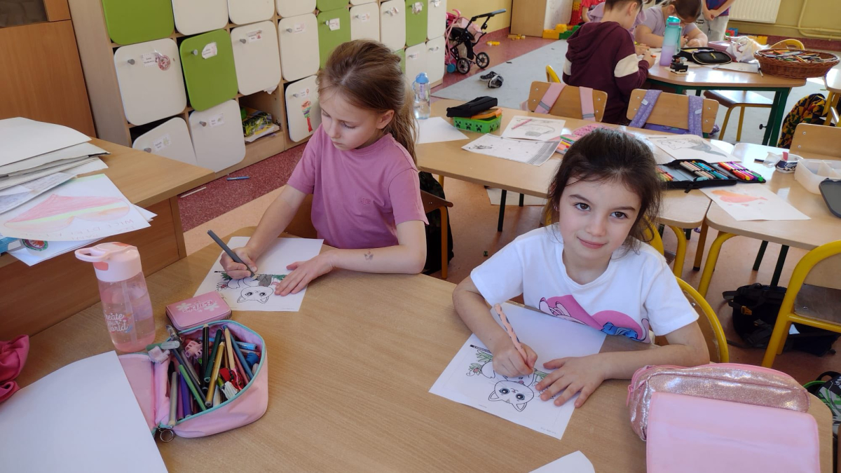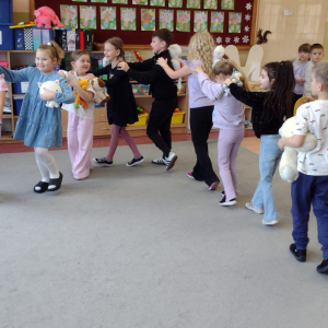 „Tygryski” i „Świetliki” uczyły się, jak rysować koty według instrukcji, poznały słowa piosenki „Kocur Bury” oraz wzięły udział w radosnym „Balu kotów”.