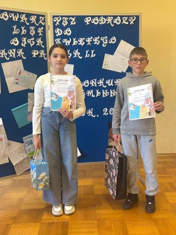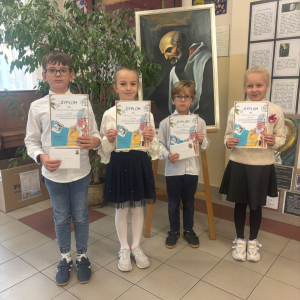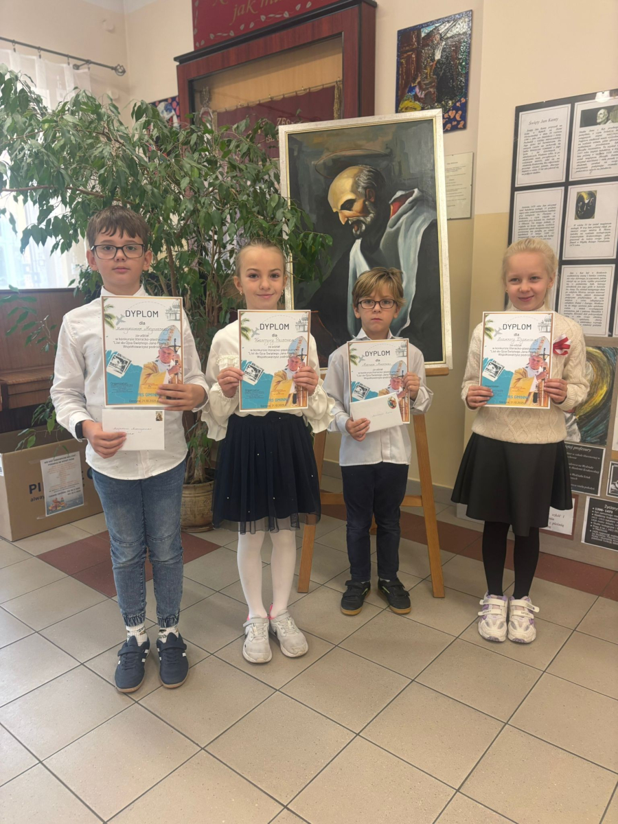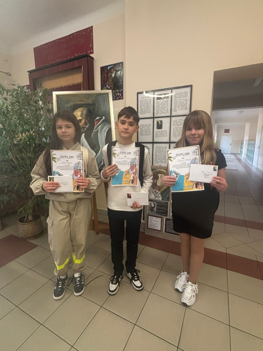 Z radością informujemy, że w konkursie „List do Ojca Świętego Jana Pawła II. Współtowarzysz podróży" pierwsze miejsce zdobył Filip Pigan z klasy 6, a wyróżnienie otrzymała Gabriela Duży z klasy 6.