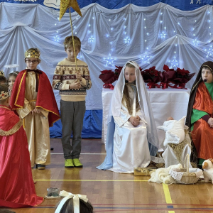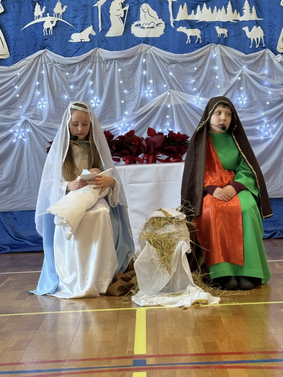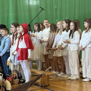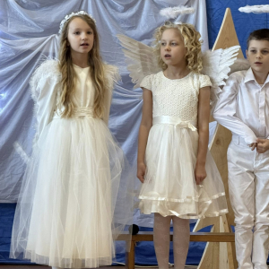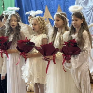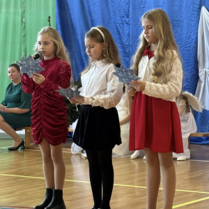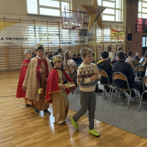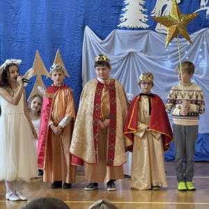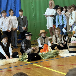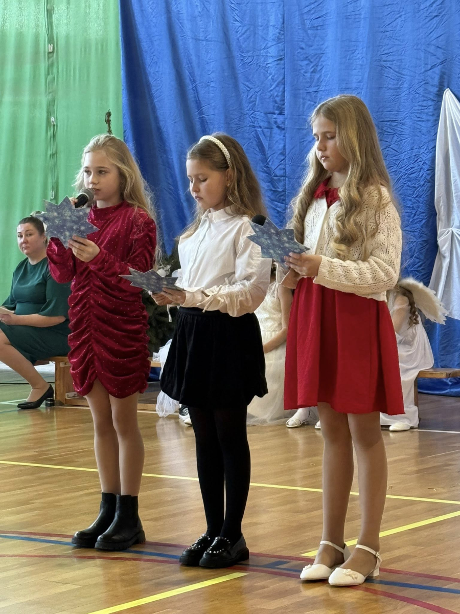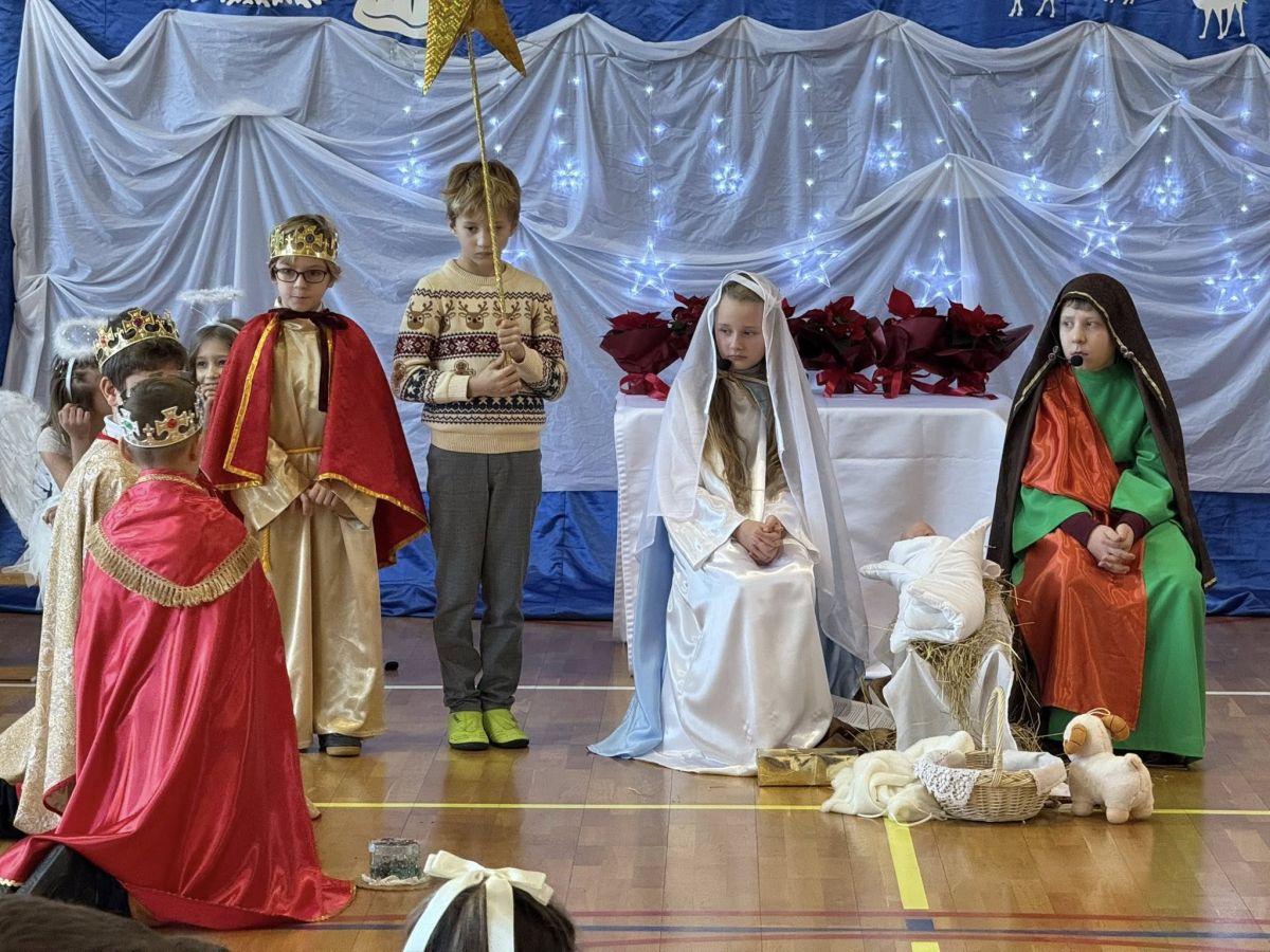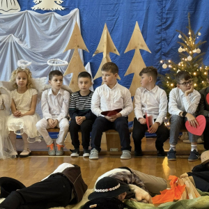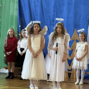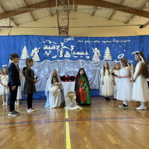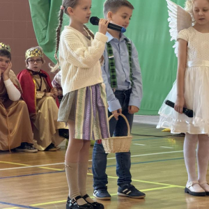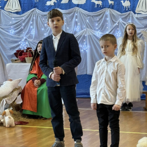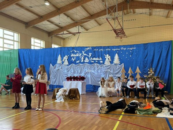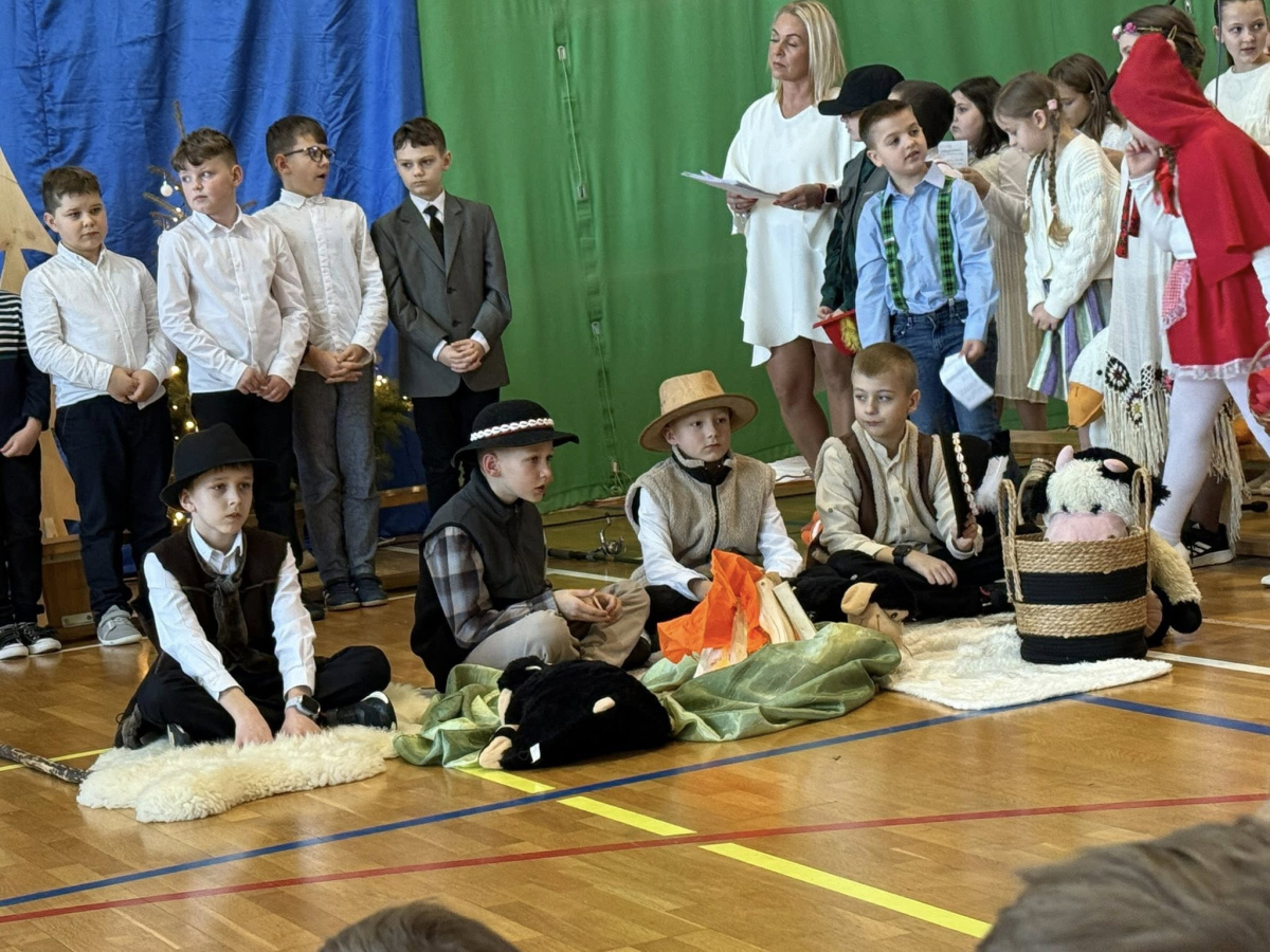 Magia Świąt zagościła dziś w naszej szkole Dzisiejsze jasełka były prawdziwym świętem radości, wzruszeń i wspólnego przeżywania tajemnicy Narodzenia Pana Jezusa. Na szkolnej scenie wystąpili mali, ale niezwykle utalentowani aktorzy – uczniowie klas 3a i 3b, których wsparli również chłopcy z klas 1 i 2. Każdy uczeń miał swoją wyjątkową rolę i każdy odegrał ją z ogromnym zaangażowaniem i sercem. Dziewczynki stworzyły przepiękny chór, którego śpiew kolęd poruszał do głębi serca i wprowadził wszystkich w prawdziwie świąteczny nastrój. Całość dopełniły barwne postacie z bajek, które w niezwykły sposób połączyły świat dziecięcej wyobraźni z historią narodzin Zbawiciela. Z całego serca ogromnie dziękujemy Rodzicom za przygotowanie pięknych, dopracowanych strojów, które nadały temu wydarzeniu wyjątkowego blasku. Wielkie podziękowania kierujemy również do siostry Anny – za wspaniały scenariusz, cierpliwość, liczne próby oraz serce włożone w przygotowanie uczniów. Dzisiejszy występ pokazał, że nasi uczniowie są niesamowici i dali z siebie absolutnie wszystko. Serdecznie dziękujemy za obecność naszym Gościom: Panu Wójtowi Ryszardowi Jędruchowi, Przewodniczącej Rady Rodziców – Marzence Krupie, oraz wszystkim Rodzicom, którzy z dumą i wzruszeniem podziwiali swoje dzieci jako małych aktorów. Szczególne podziękowania kierujemy także do Dyrekcji, Nauczycieli oraz wszystkich Uczniów, którzy mieli okazję obejrzeć to wyjątkowe przedstawienie i wspólnie z nami przeżywać tę piękną, świąteczną chwilę. Na zakończenie życzymy wszystkim, aby nadchodzące Święta Bożego Narodzenia były pełne miłości, spokoju, rodzinnego ciepła i radości, a Nowy Rok przyniósł zdrowie, uśmiech oraz spełnienie marzeń. Niech magia dzisiejszych jasełek pozostanie w naszych sercach na długo.