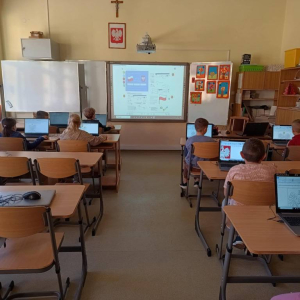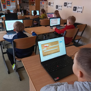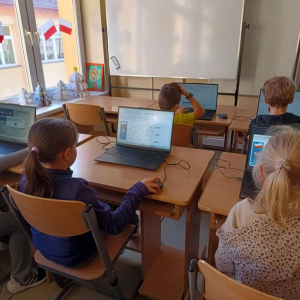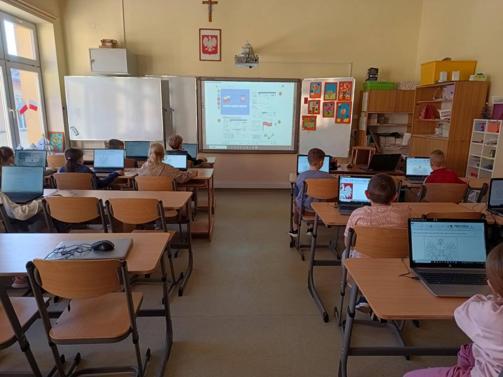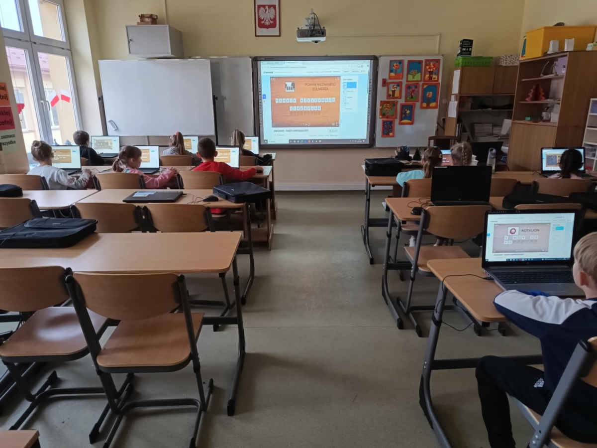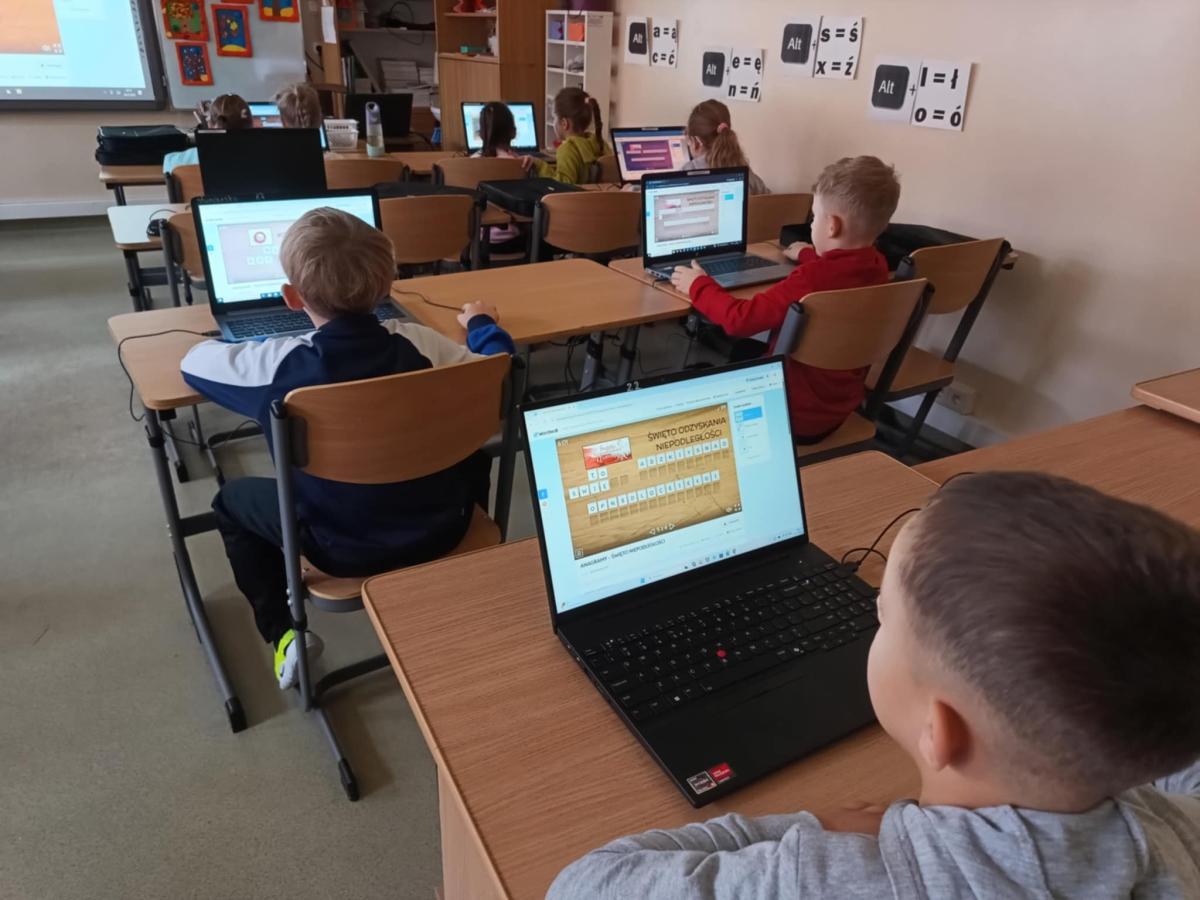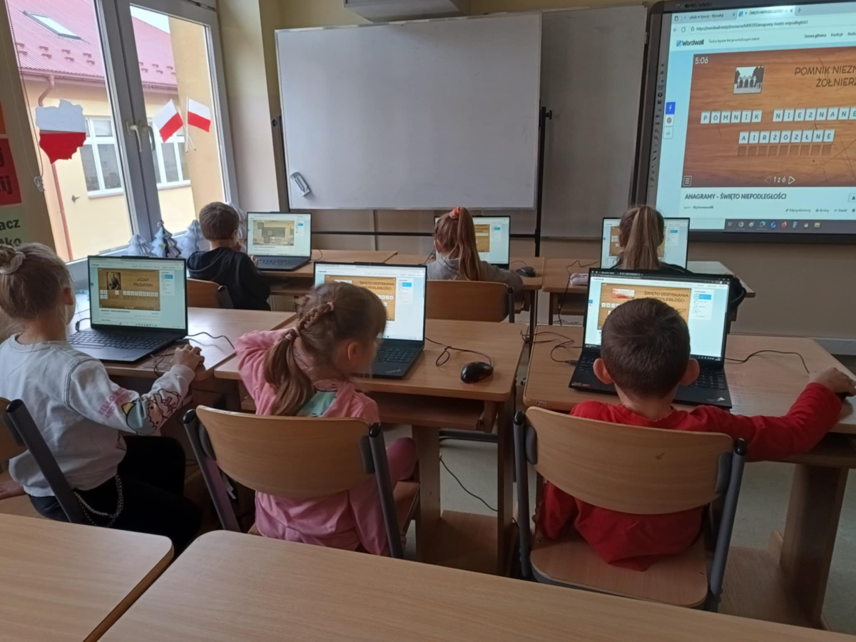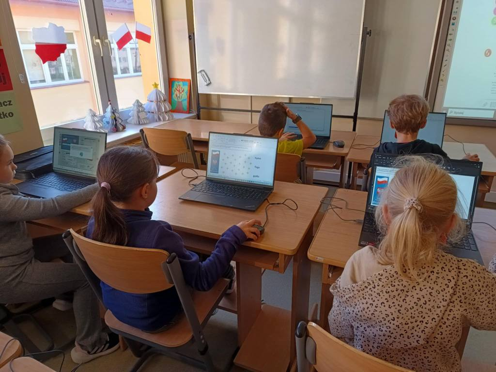 Z okazji Święta Niepodległości uczniowie naszej szkoły połączyli naukę z zabawą podczas specjalnych zajęć informatycznych.