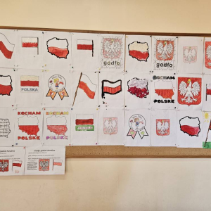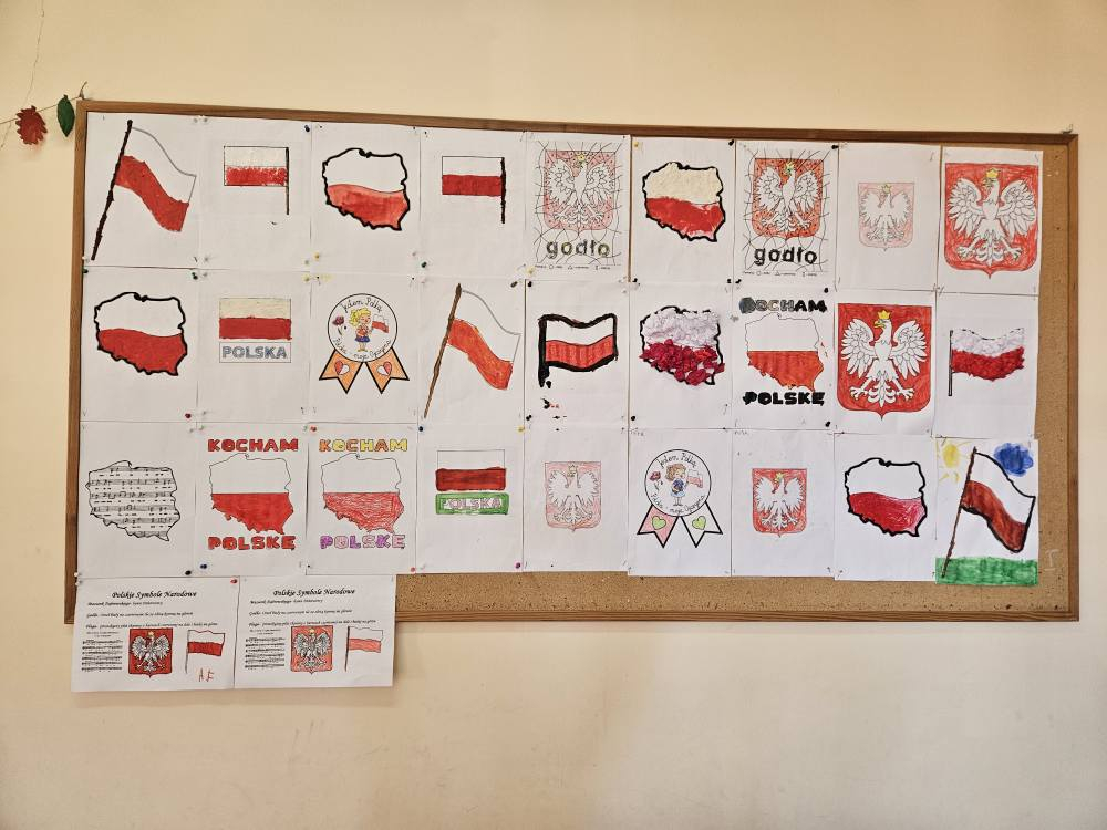 Świetliki zrealizowały następne zadanie projektowe: Symbole narodowe - wykonanie gazetki ściennej o fladze, godle i hymnie. Podczas pogadanki dzieci poznały polskie symbole narodowe. Zajęcia obejmowały omówienie ich historycznego znaczenia i symboliki, naukę właściwego zachowania podczas ich uroczystego odgrywania lub prezentowania.