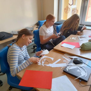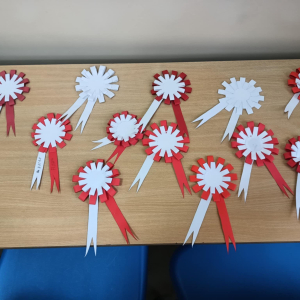 Z okazji zbliżającego się Narodowego Święta Niepodległości – 11 listopada, uczniowie klasy 6 na lekcjach techniki z zaangażowaniem przygotowali piękne, biało-czerwone kotyliony.