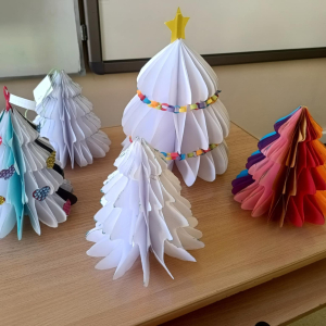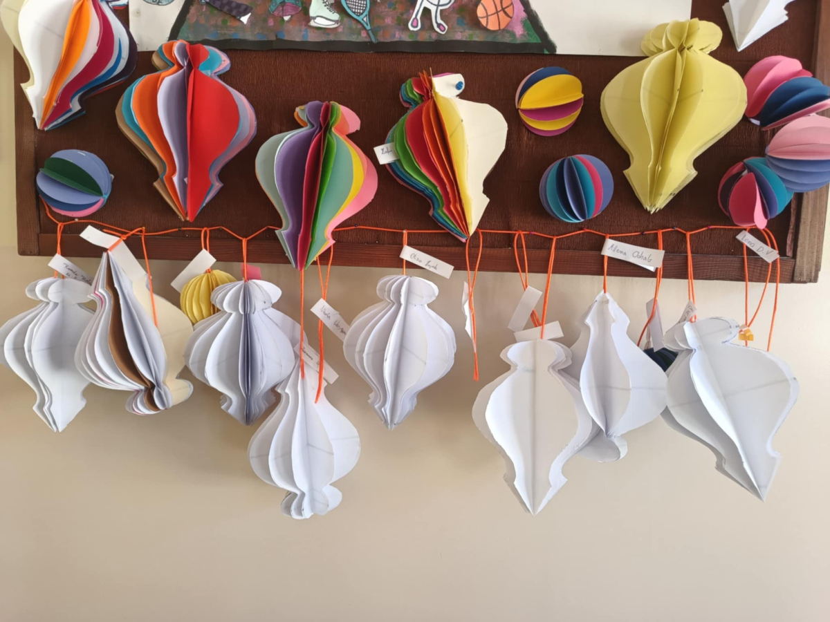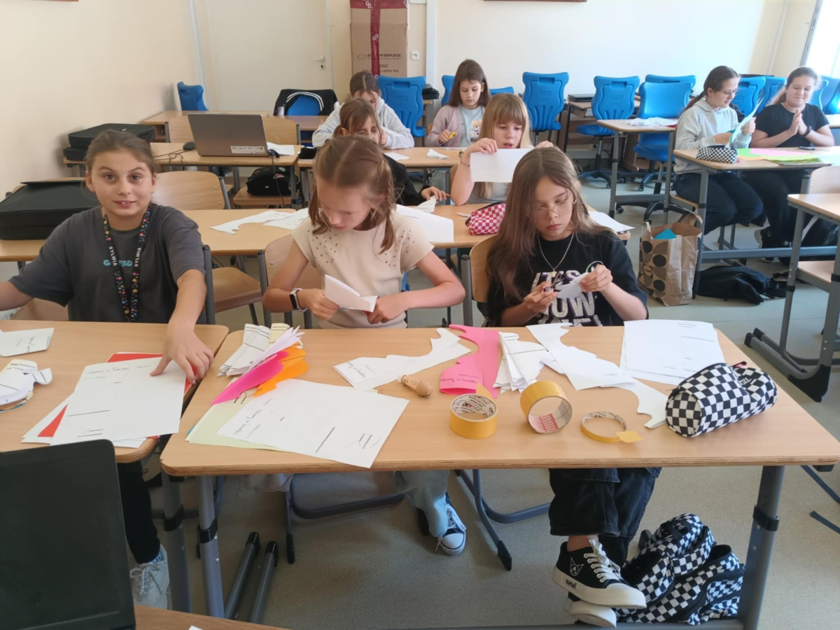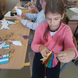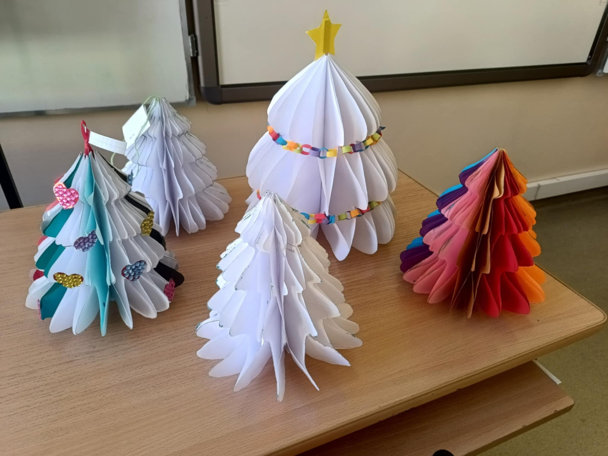 Podczas ostatnich lekcji techniki uczniowie klasy 5 mieli okazję wykazać się kreatywnością i zdolnościami manualnymi, wykonując własnoręcznie ozdoby. Powstały piękne kule, bombki, a niektórzy zdecydowali się na ambitniejsze wyzwanie – stworzenie całych choinek!