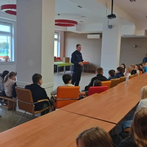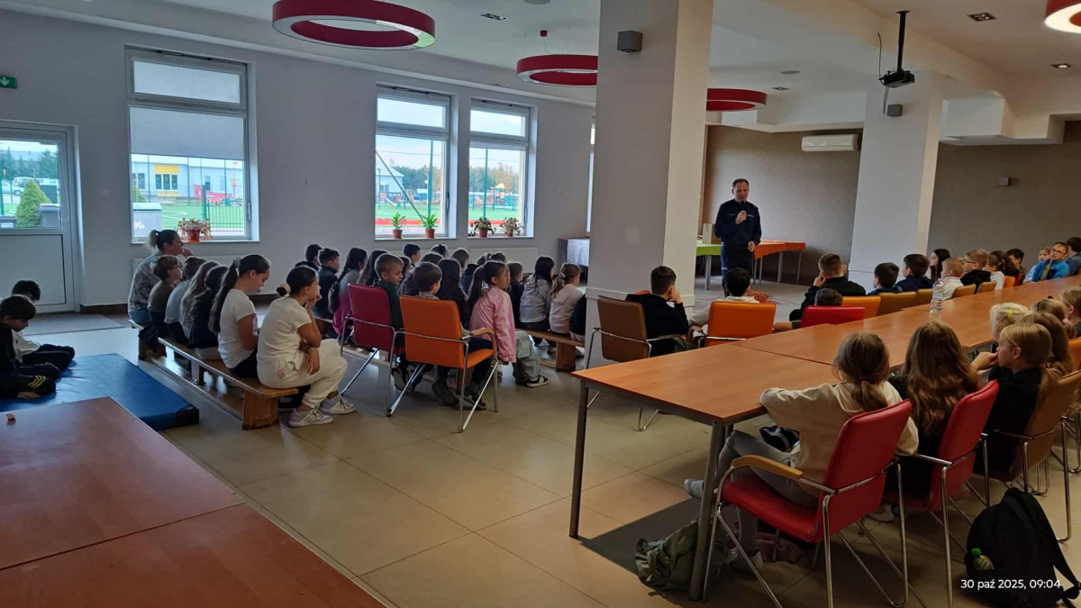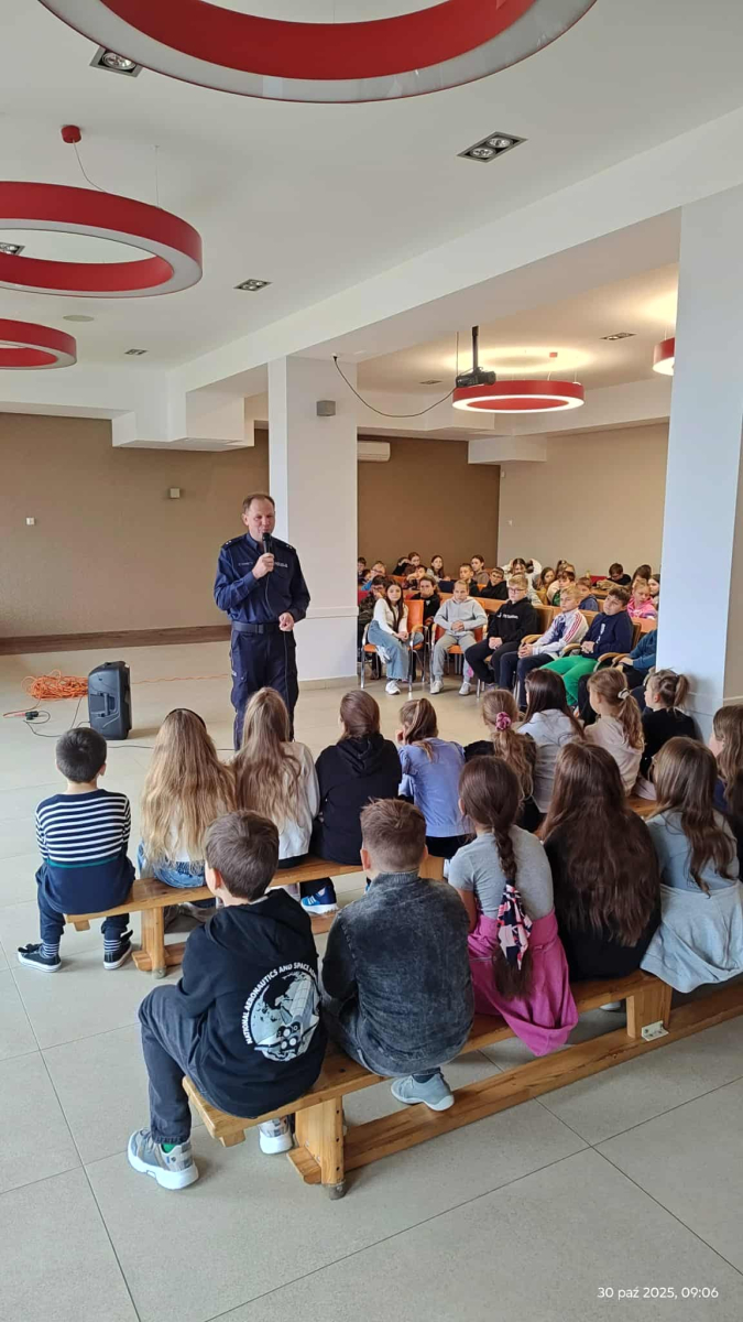 Dnia 30 listopada uczniowie naszej szkoły mieli okazję wziąć udział w wyjątkowym spotkaniu z Panem podkom. Mariuszem Czyrnym, który poruszył ważne tematy związane z bezpieczeństwem na drodze, w sieci, cyberprzemocą oraz odpowiedzialnością nieletnich.