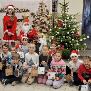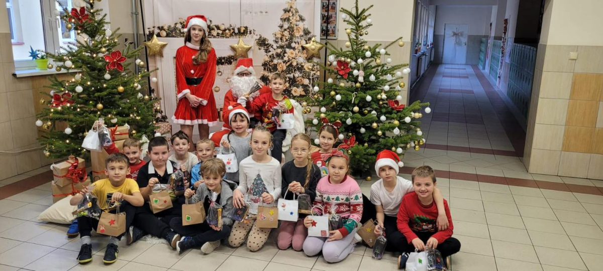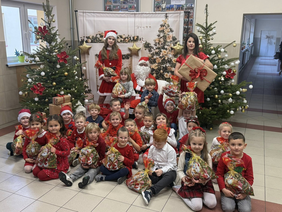Mikołaj przywitał się dziś z każdym uczniem, uczennicą i nauczycielami, wysłuchał przygotowanych piosenek przedszkolaków, a w zamian obdarował uczniów upominkami, dobrym słowem i mnóstwem świątecznej radości.