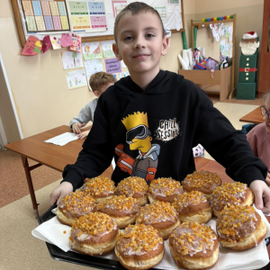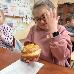 Dziś w naszej klasie świętowaliśmy radosny i słodki Tłusty Czwartek. Dzieci z wielką przyjemnością kosztowały oraz podziwiały pyszne, pięknie wyglądające pączki, które umiliły nam ten wyjątkowy dzień.