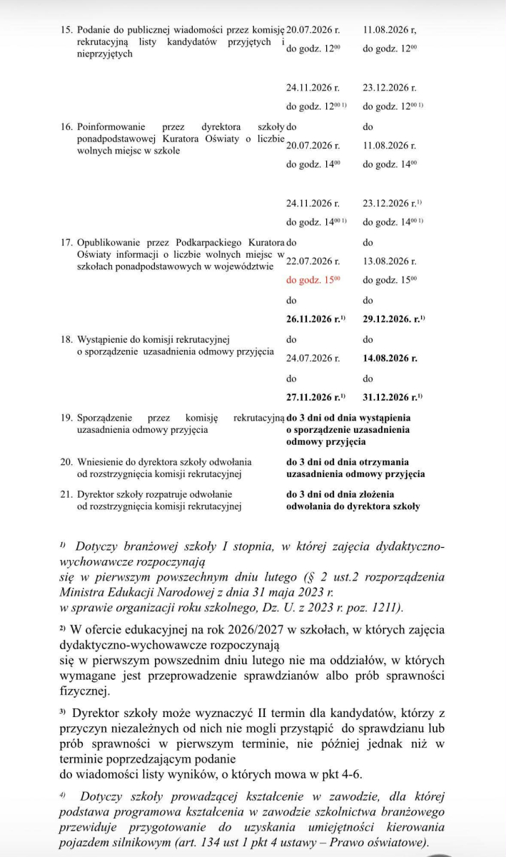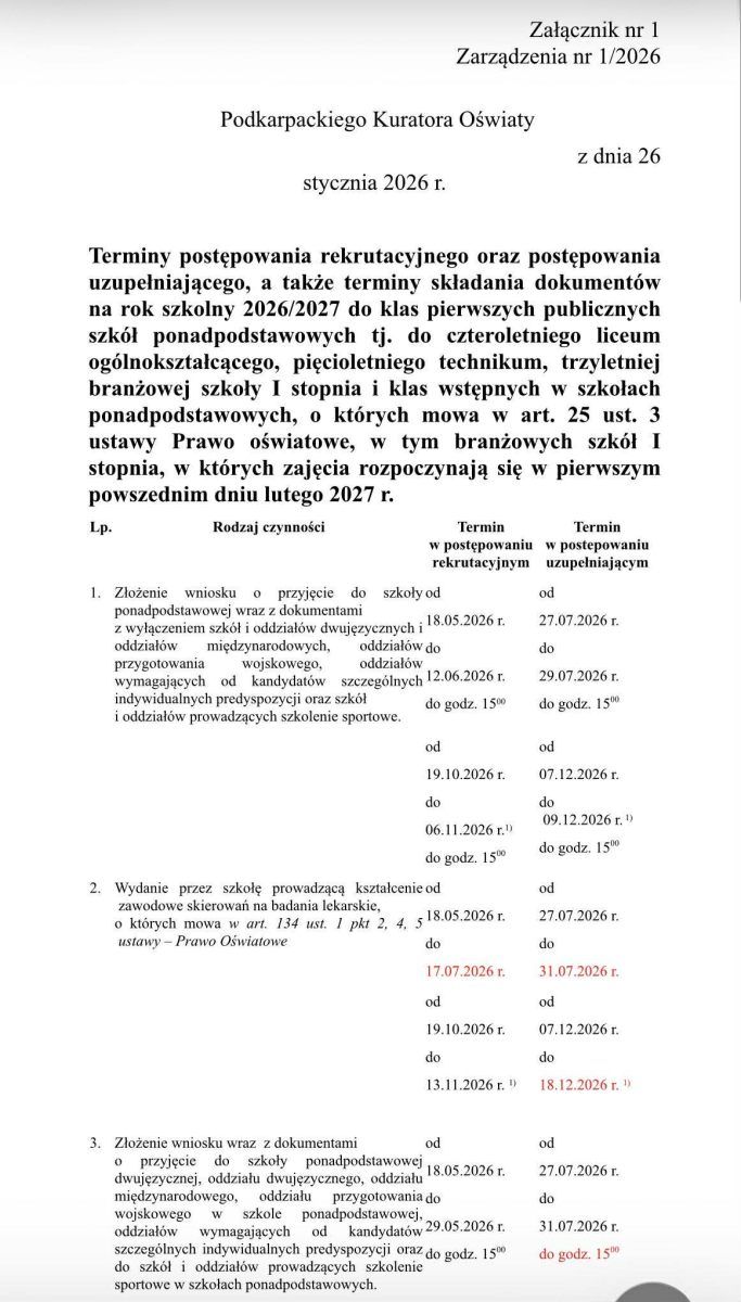 Podkarpacki Kurator Oświaty opublikował terminy postępowania rekrutacyjnego do szkół ponadpodstawowych. Zachęcamy do zapoznania się z harmonogramem, aby na czas dopełnić wszystkich formalności.
