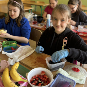 Podczas zajęć uczniowie przygotowywali proste przekąski, wśród których królowały sałatki owocowe, gofry i tosty. W praktyce wykorzystali też słownictwo poznane na lekcjach.