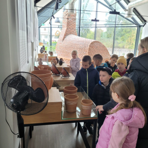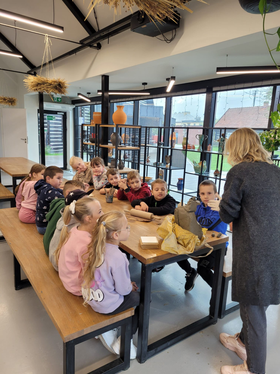 29 września uczniowie kl. II a wraz z wychowawczynią, udali się do Medyni Głogowskiej, gdzie mieli okazję poznać tradycję garncarską i zobaczyć jak powstają wyroby ceramiczne. Zwiedzili muzeum mieszczące się na terenie Zagrody Garncarskiej, a także uczestniczyli w warsztatach tworzenia z gliny i toczenia na kole garncarskim.