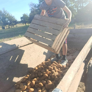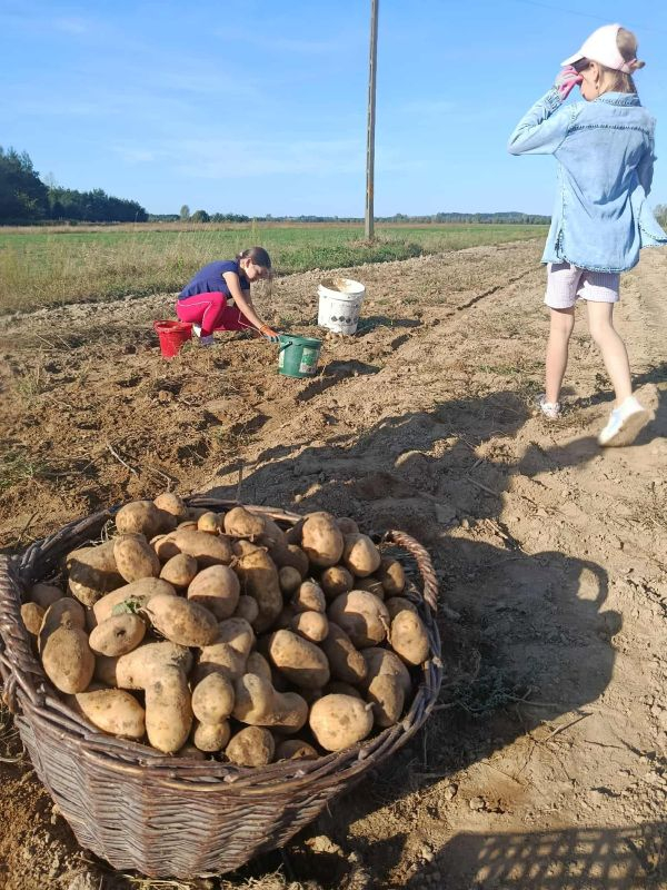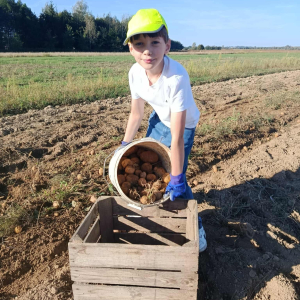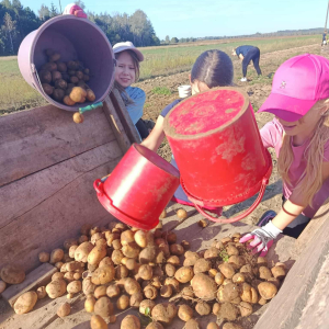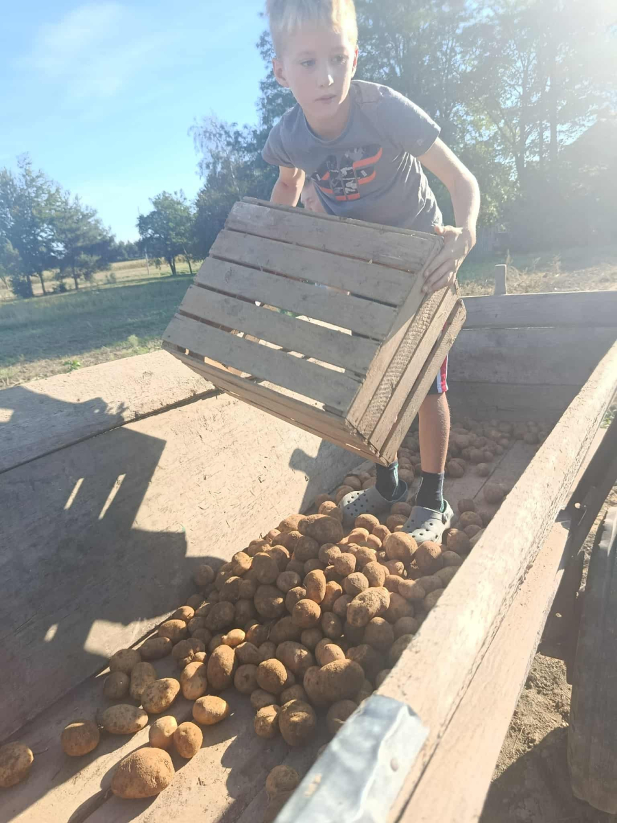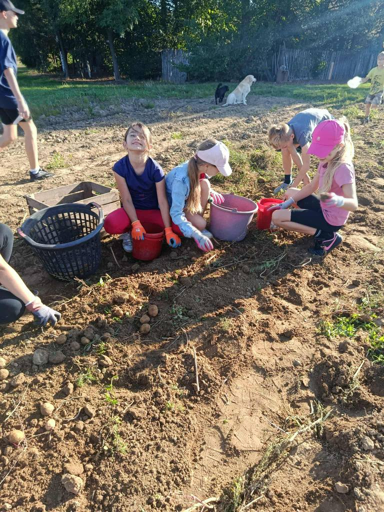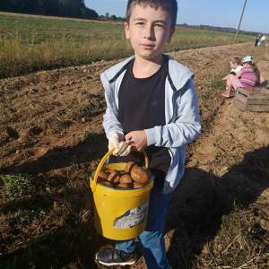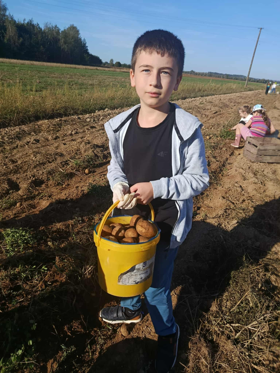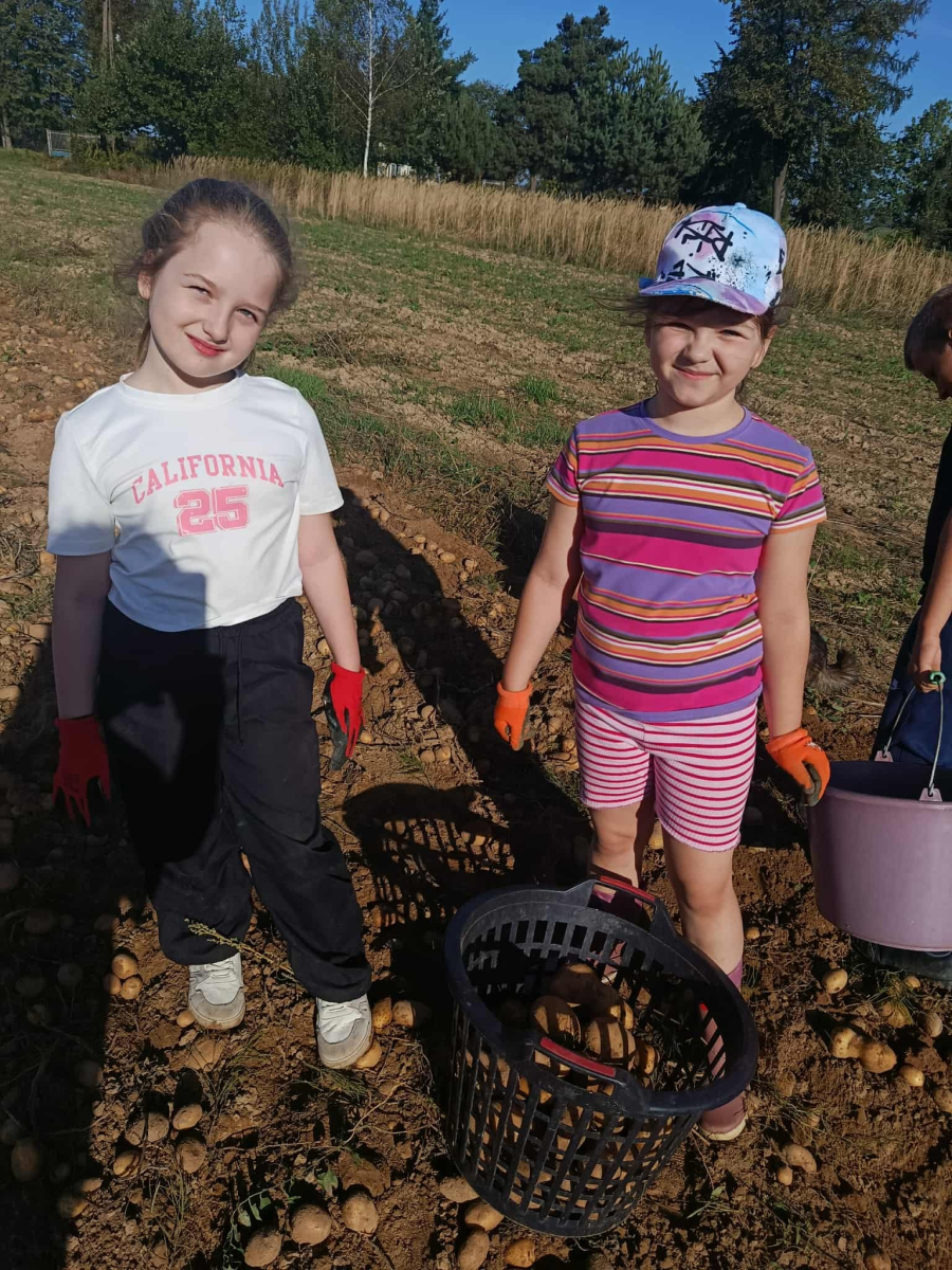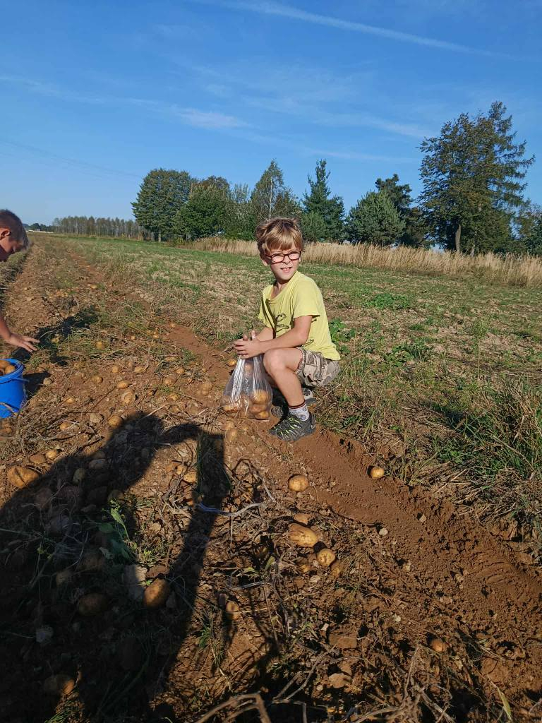W poniedziałek, 22 września, uczniowie klasy 3b wybrali się na wyjątkową lekcję w plenerze – wykopki ziemniaków. Dzięki uprzejmości lokalnego gospodarza dzieci mogły na własne oczy zobaczyć, jak wygląda praca na polu i jak przebiega zbiór ziemniaków.