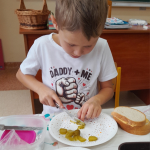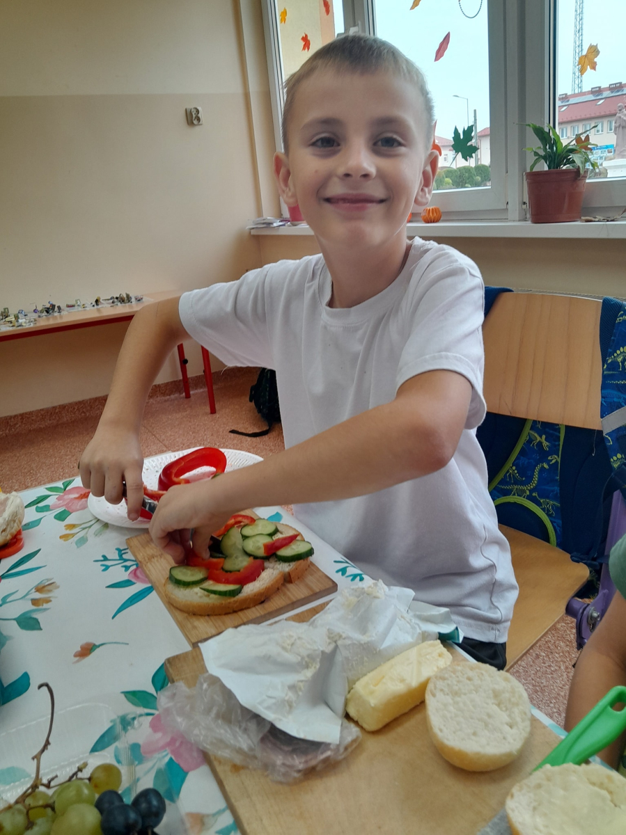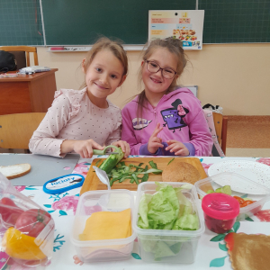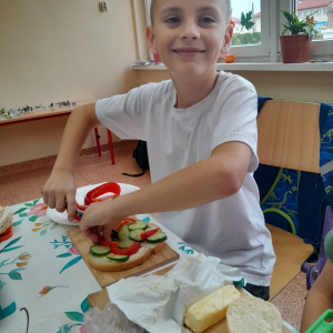 W części praktycznej uczniowie przystąpili do przygotowania własnych zdrowych kanapek.